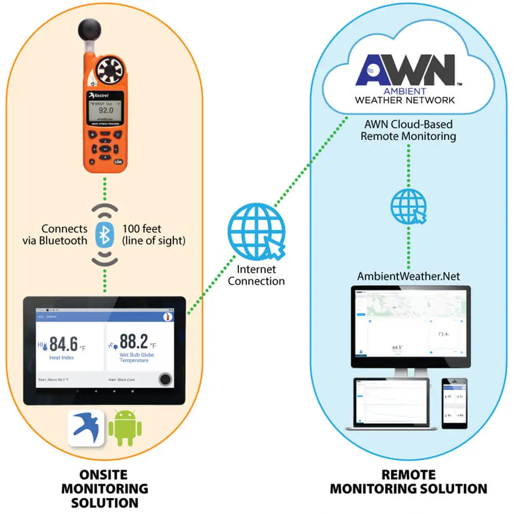 A LiNK funkció lehetővé teszi az aktuális és rögzített adatok távoli elérését iOS vagy Android mobileszközről. Mobiladat-kapcsolattal rendelkező tablet a közelben elhelyezve akkor is képes riasztásokat küldeni, amikor nincs a helyszínen. A Kestrel a világ legelismertebb hőstressz-szakértőinek közreműködésével tervezte a készüléket, hogy segítsen az állomány hőstresszének mérésében és kezelésében, és ezáltal maximalizálja a jövedelmezőséget.