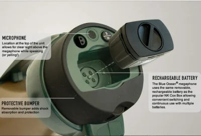 A Blue Ocean Megafont egyedi tervezéssel fejlesztették ki, hogy olyan szinten megküzdhessenek a környezeti elemekkel mellyel kiemelkednek a versenytársak termékei közül. A hangosabb, tisztább hang kivetítéséhez a megafon nagyobb hatékonyságú erősítővel rendelkezik, amely az általános hangminőséget javítja.
